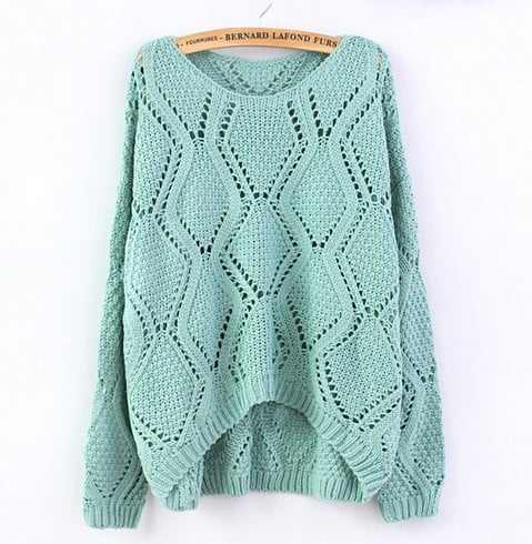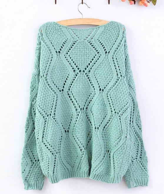 Green Large Rhombic Hollow Sweet Sweater 71909