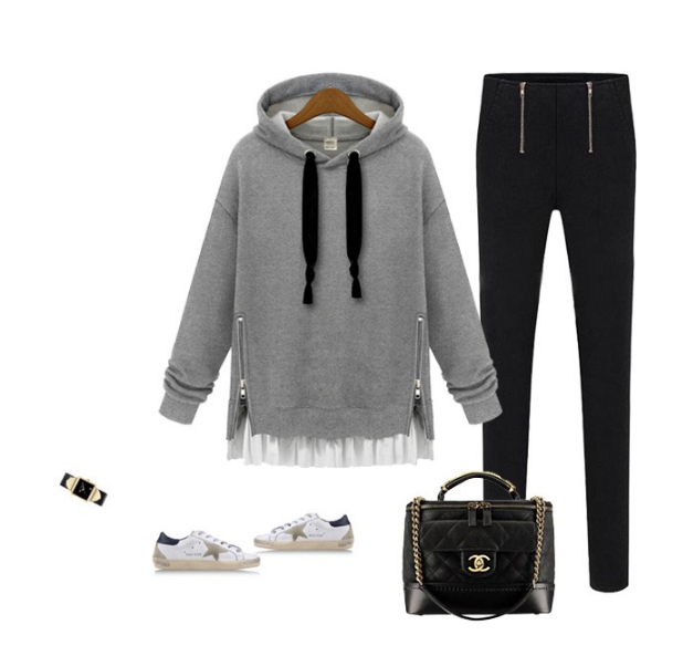 Loose Large Size Long-Sleeved Hooded Sweater Coat 111205