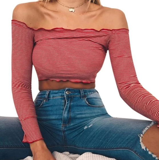 Sexy Long Sleeve Off Shoulder Strap T-Shirt Top
