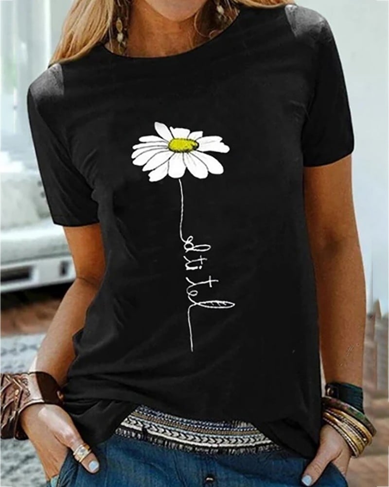 Casual Chrysanthemum Printed Short-Sleeved T-Shirt