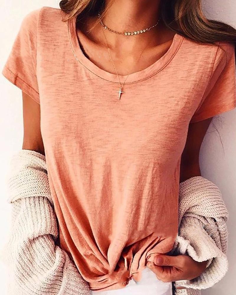Solid Color Women'S Short Sleeve Round Neck T-Shirt