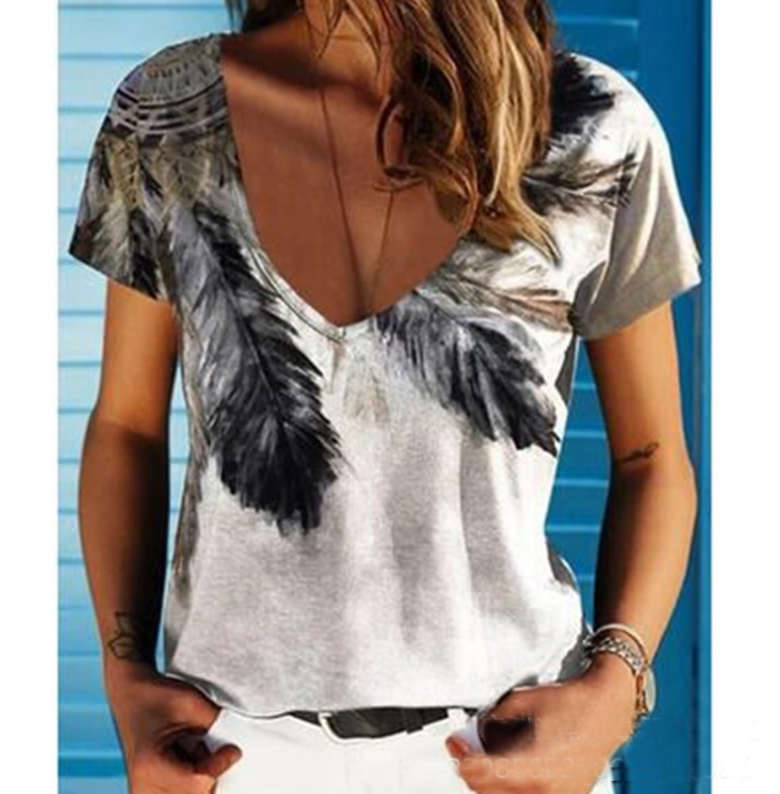 Casual Round Neck Sequined Short Sleeve T-Shirt
