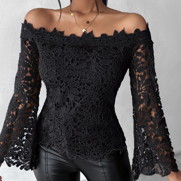 Solid Color Women'S High Waisted Long Sleeve Lace Top