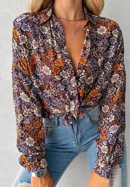 Elegant Elegant Floral Long Sleeved Shirt Top