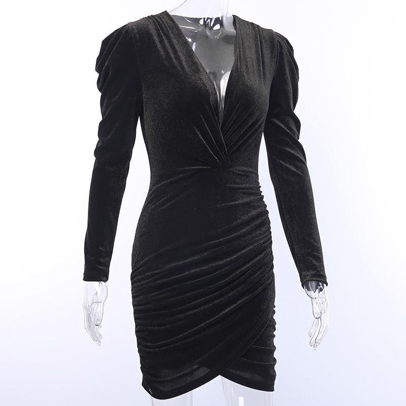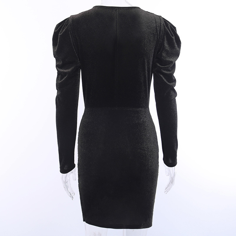 V-Neck Solid Color Temperament Long Sleeve Dress