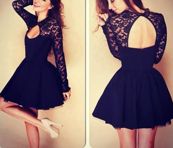Black Lace Stitching Dress