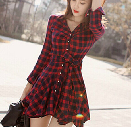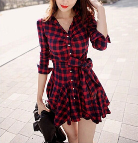 SLIM PLAID LONG-SLEEVED DRESS 01