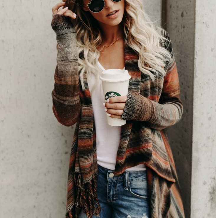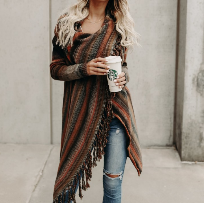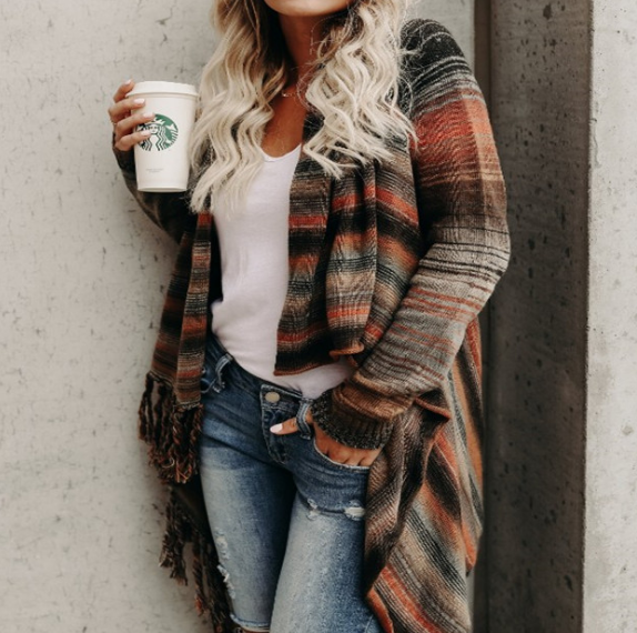 Long Sleeve Knit Cardigan Striped Sweater Coat