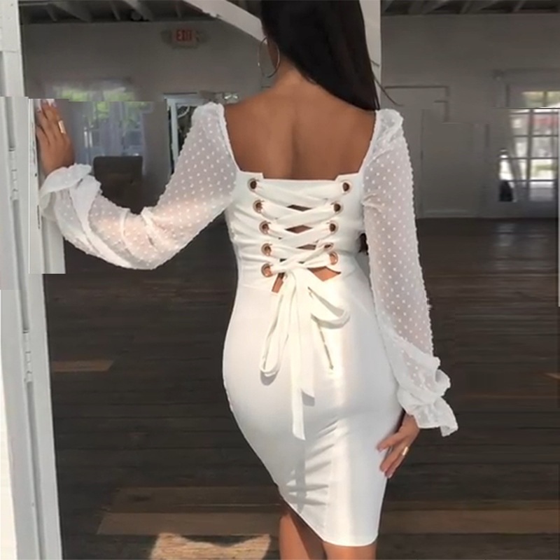 White Women's Halter Lace Slim Dress