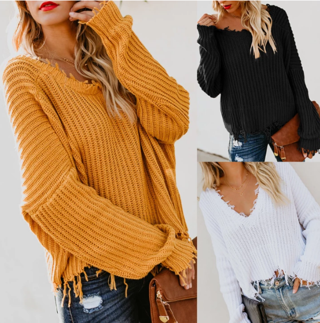 Loose Long Sleeve V-Neck Solid Color Halter Sweater