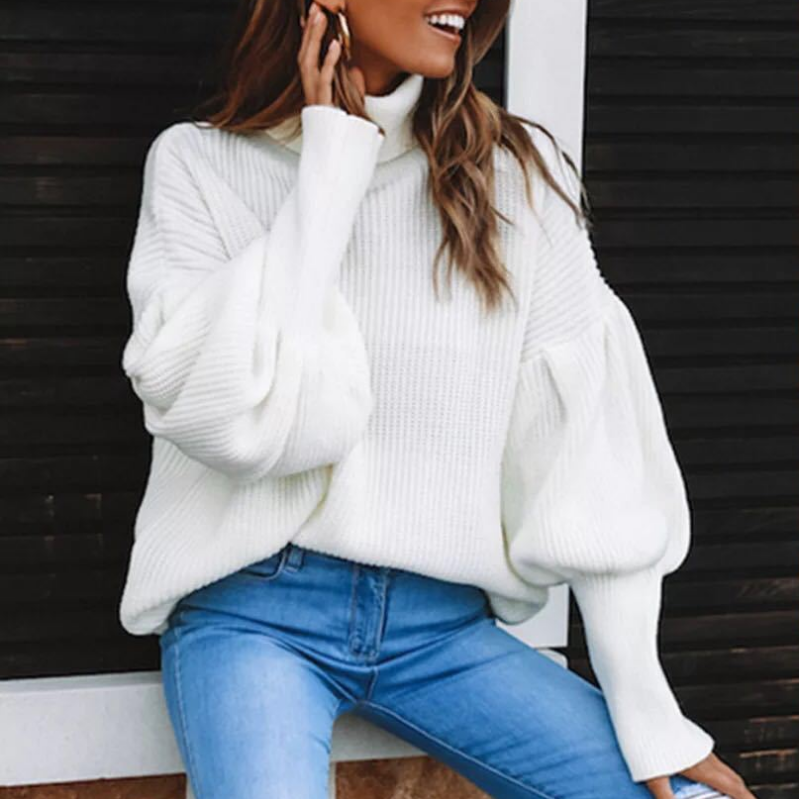 Casual Women'S High-Necked Long-Sleeved Sweater