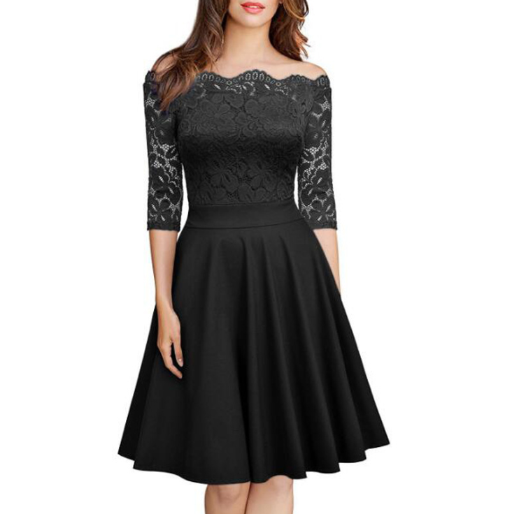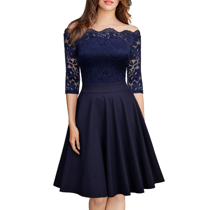 Solid Color Slim Lace Dress