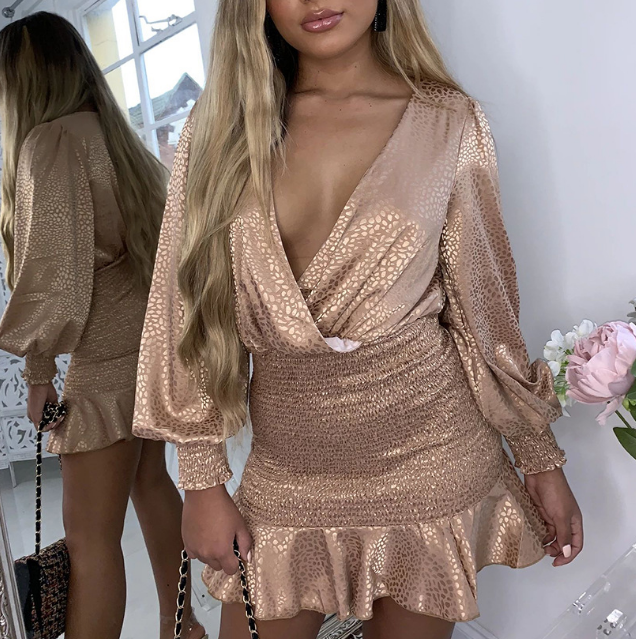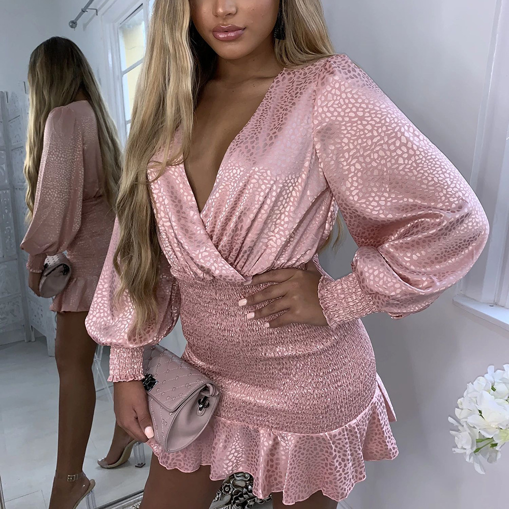 Sexy V-Neck Slim Long-Sleeved Package Hip Dress