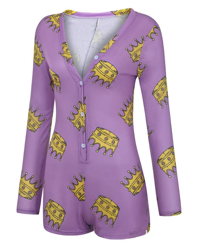 Slim Sexy Printed Long-Sleeved Jumpsuit