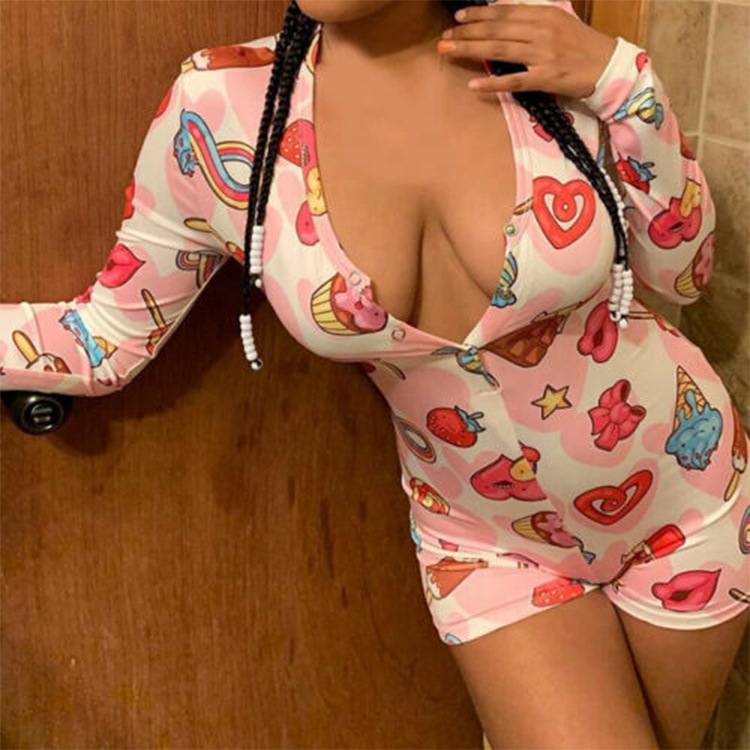 Slim Printed Sexy Long Sleeve Jumpsuit