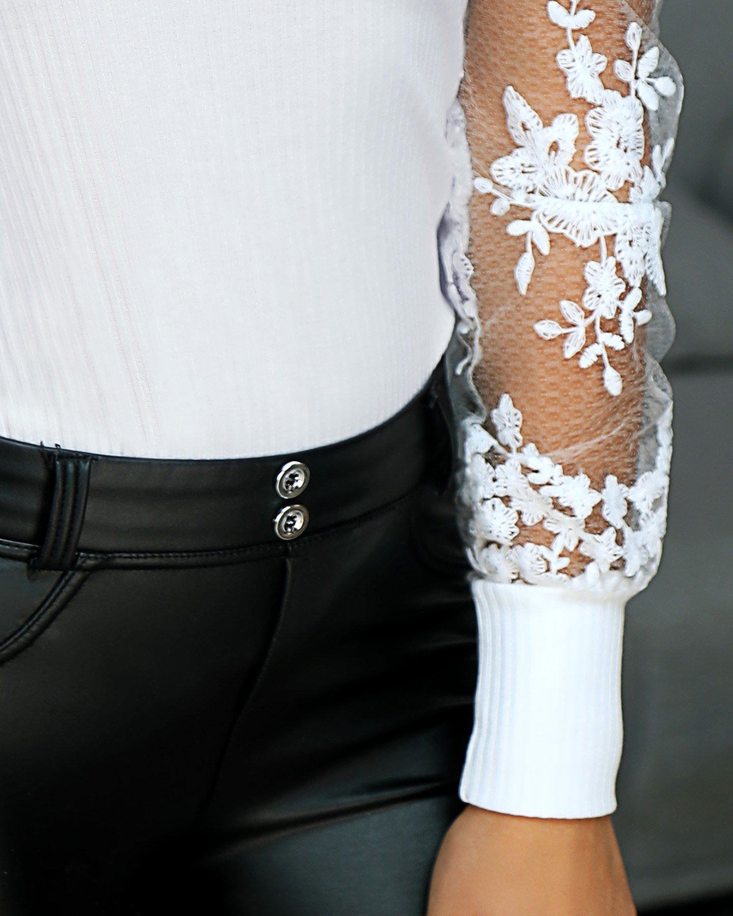 Sweet Flower Embroidered Puff Sleeve Shirt Tops