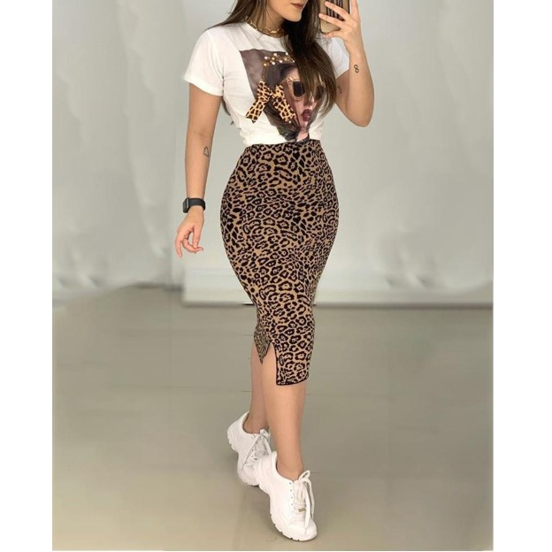 Sexy Casual Leopard Print Short Sleeve Two-Piece Suit