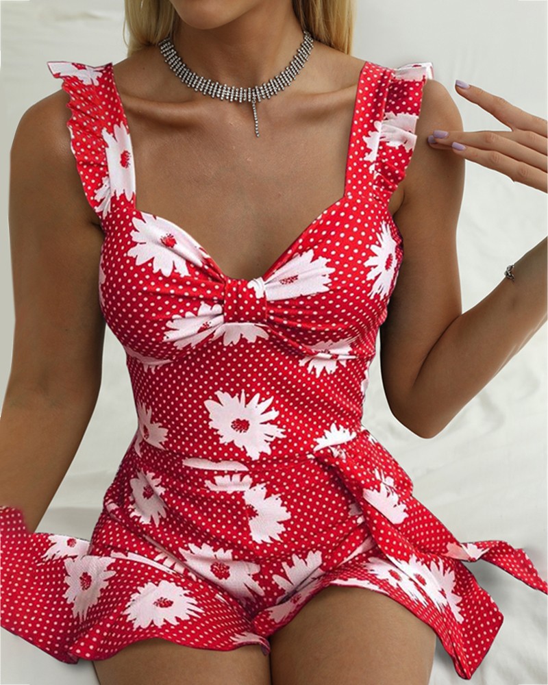 Printing Sling Flowers High Waist Dress