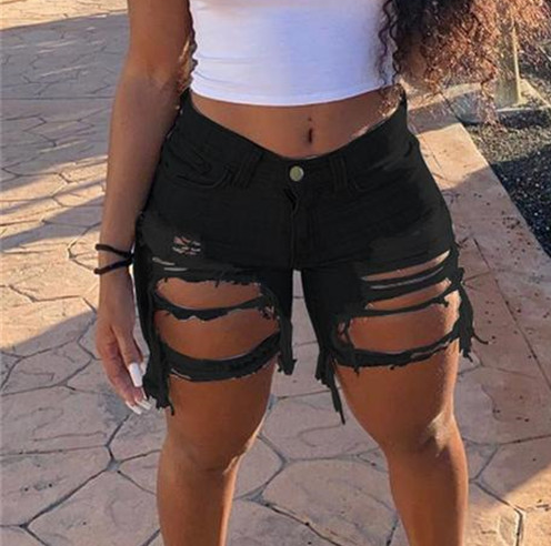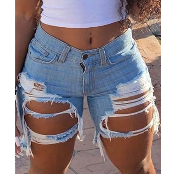 Distressed Cutout Fringe Hem Casual Denim Shorts