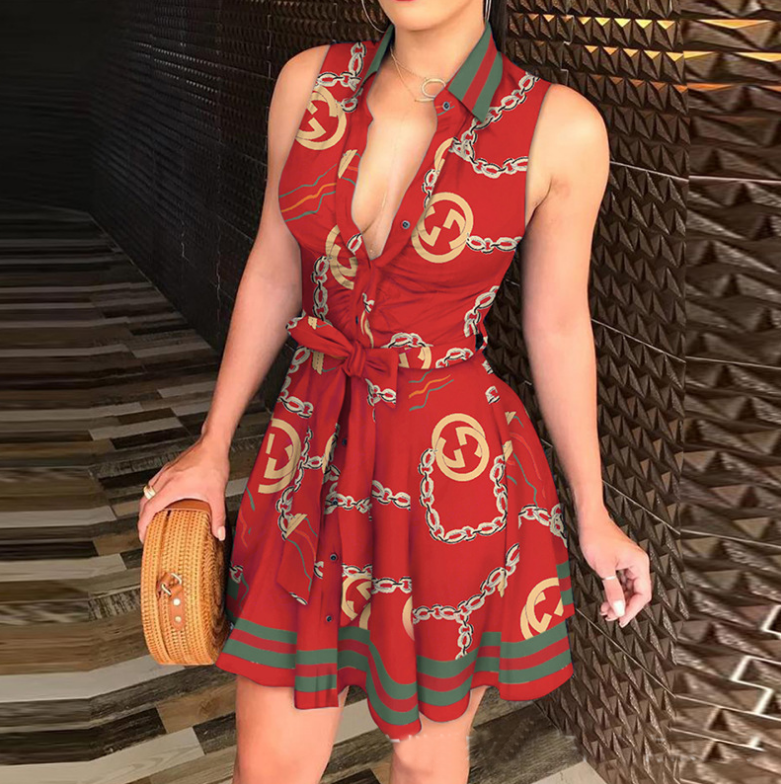 Printed Sexy Sleeveless Deep V-Neck Dress