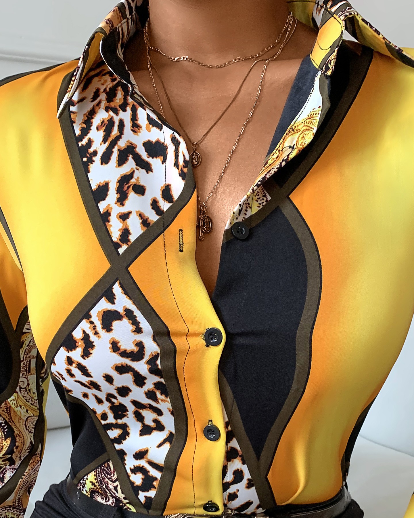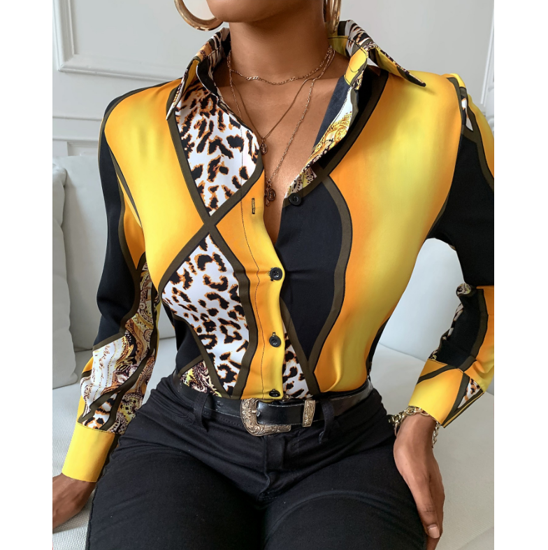 Slim Leopard Print Long-Sleeved Shirt Top