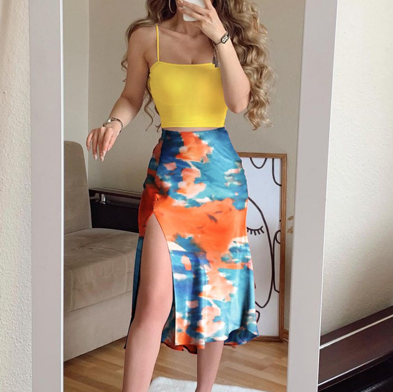 Design Printed Chiffon Two-Piece Set