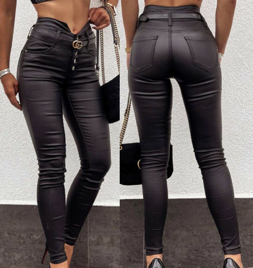 Solid Color Button Black Tight Pants
