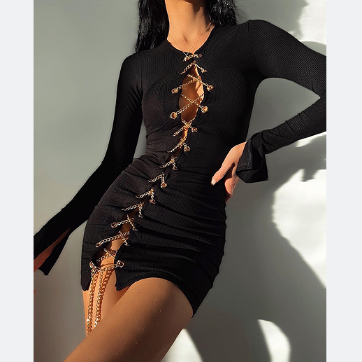 Fashion Sexy Design Long Sleeve Tight Wrap Hip Dress