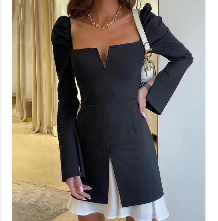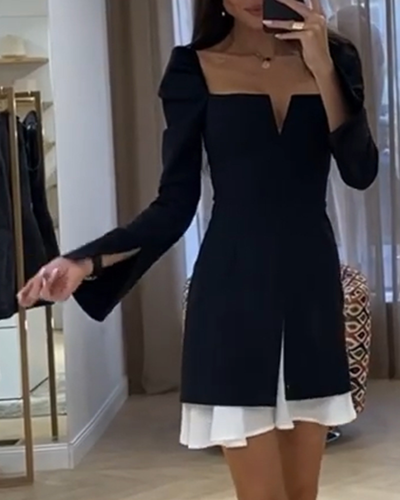 Black Slim Long Sleeve Ruffle Splicing Dress