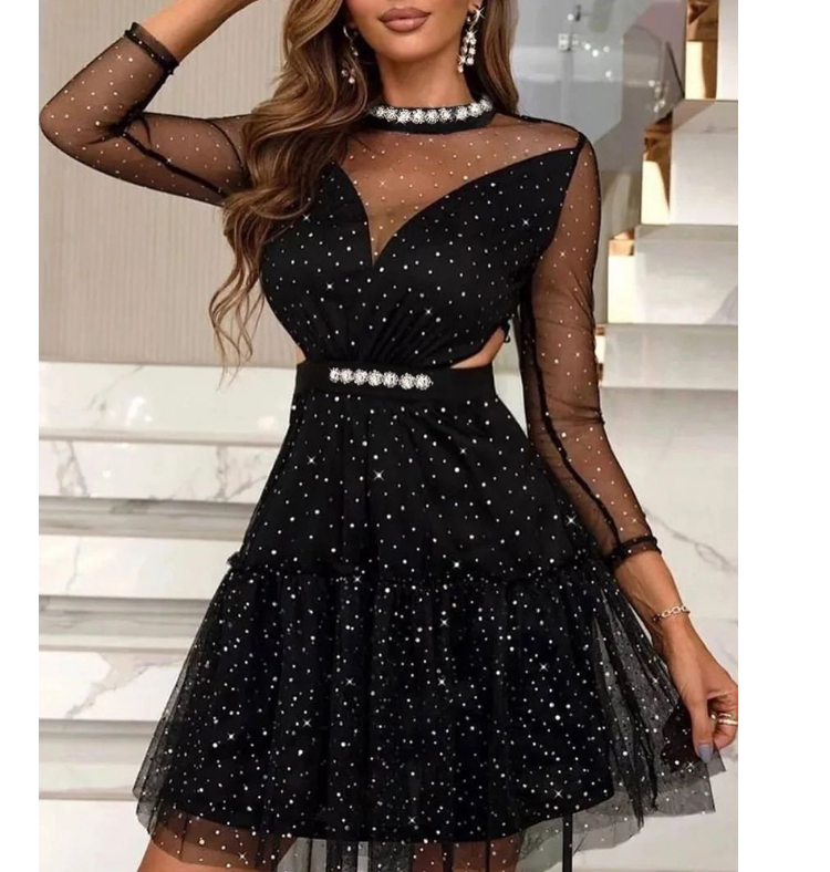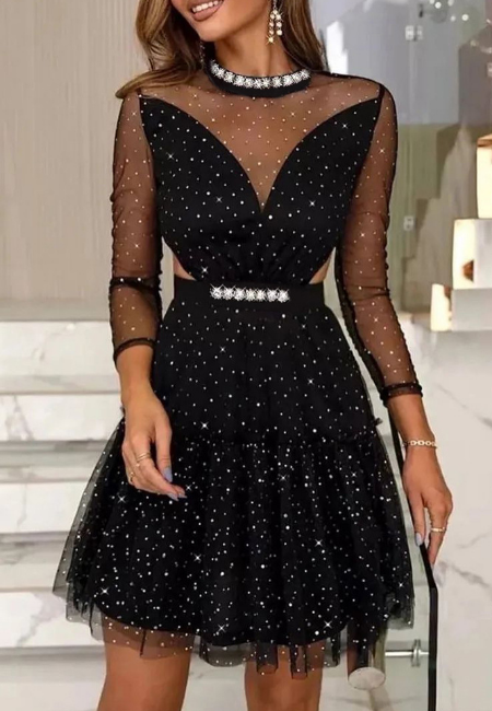 Black Sexy Mesh Long Sleeve Dress