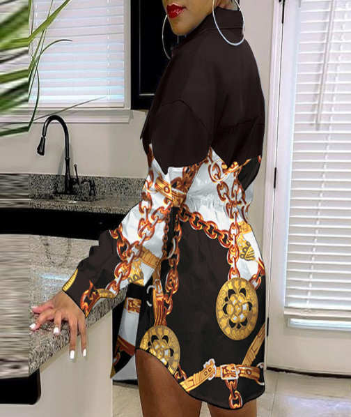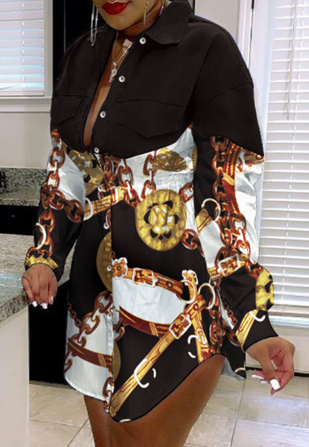 Temperament Women's Sexy Printed Panel Panel Single breasted Dress