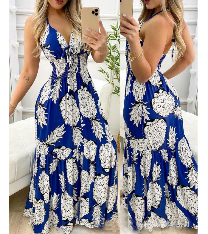 Fashion Women's Blue Sleeveless Pineapple Dress
