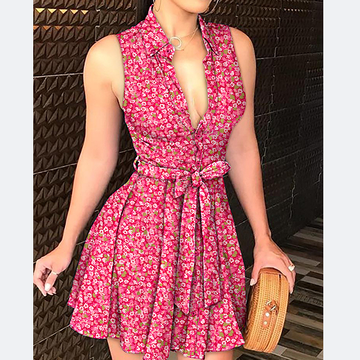 Fashion Sexy Red Printed Sleeveless Dress