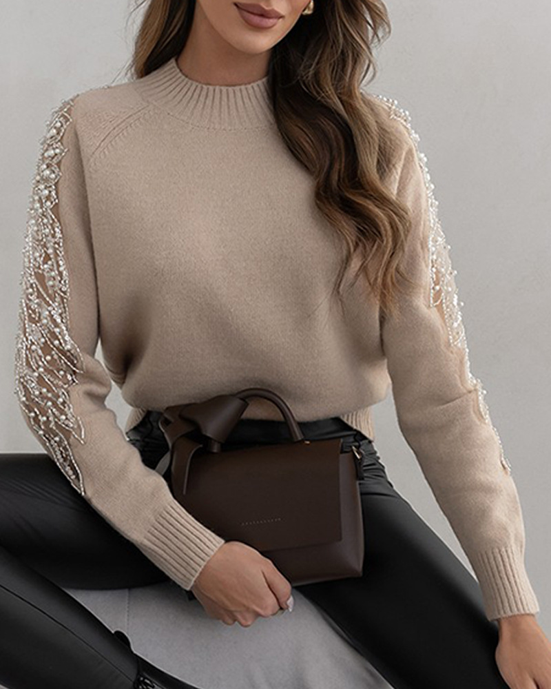 Round Neck Solid Color Spliced Long Sleeved Sweater
