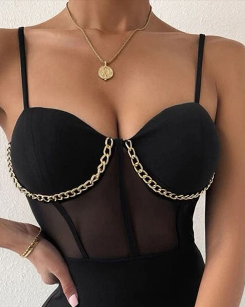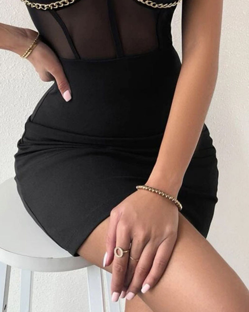 Solid Color Fashion Women Chain Mesh Splicing Dress